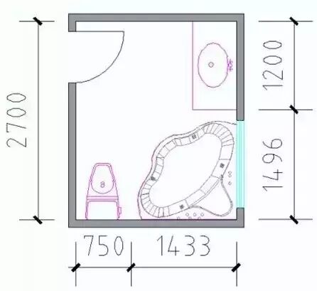卫生间大小保持在6㎡左右,两卫的另一个可以考虑在4㎡左右。